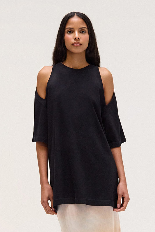 CAMISETA OVERSIZED RECORTES OMBROS PRETA