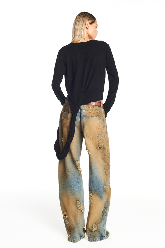 CAMISETA MANGA LONGA DESTROYED PRETA