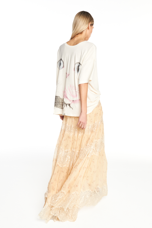 CAMISETA MANGA CURTA ABERTURA COLO E MANGA MALHA OFF WHITE