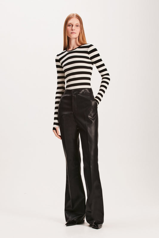 EsgotadoCAMISETA MANGA LONGA LISTRAS PRETA E OFF WHITE