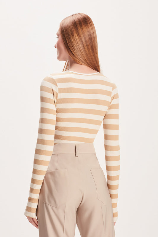 EsgotadoCAMISETA MANGA LONGA LISTRAS BEGE E OFF WHITE