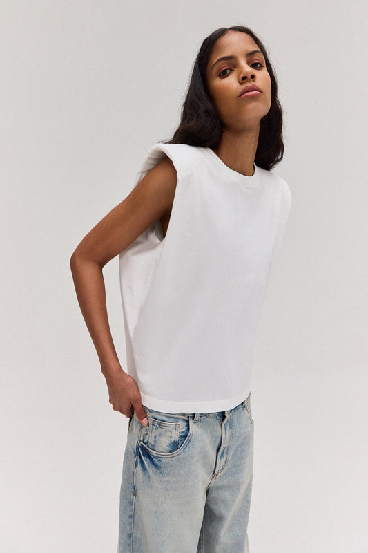 CAMISETA SEM MANGA OMBREIRAS MALHA OFF WHITE