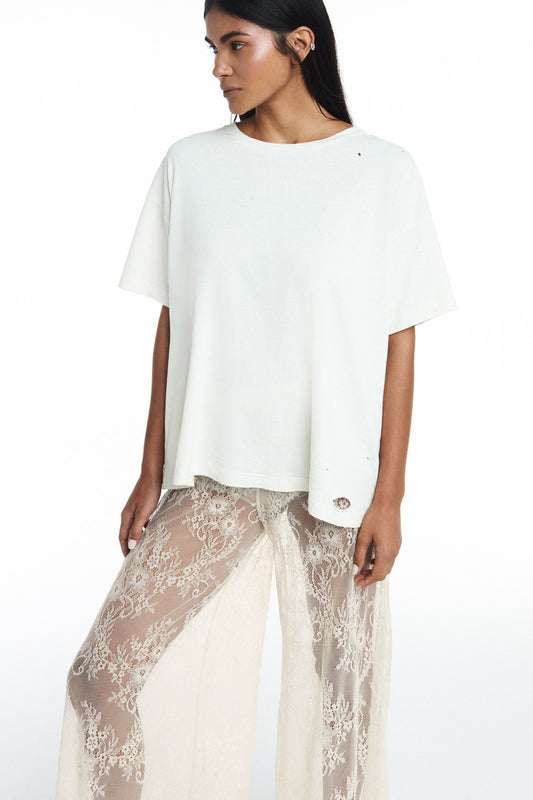 CAMISETA RASGOS E FUROS OFF WHITE