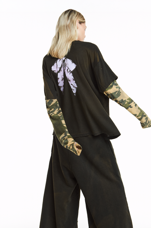 CAMISETA SOBREPOSIÇÃO LAÇO MANGA CAMUFLADA