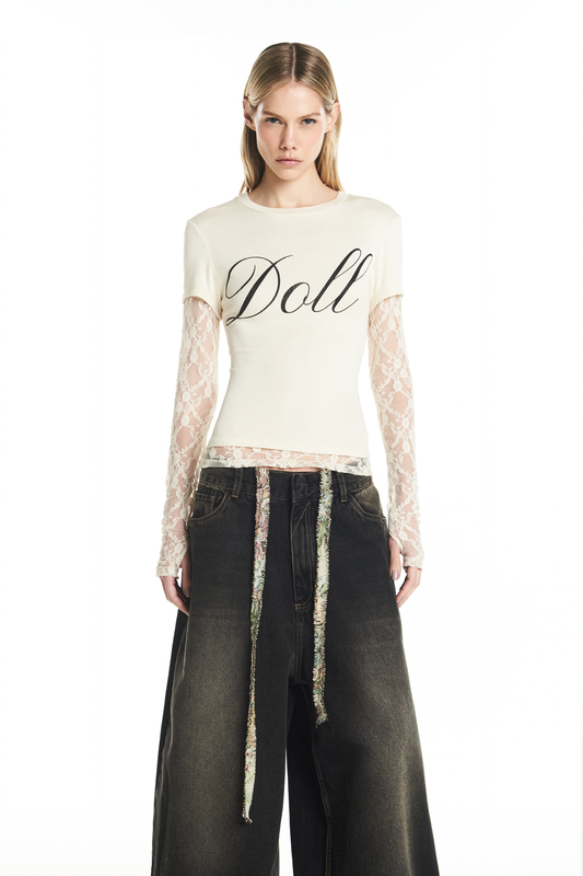 EsgotadoCAMISETA SOBREPOSIÇÃO MANGA RENDA OFF WHITE DOLL