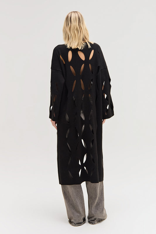 SaleCARDIGAN TRICOT LONGO FUROS PRETO