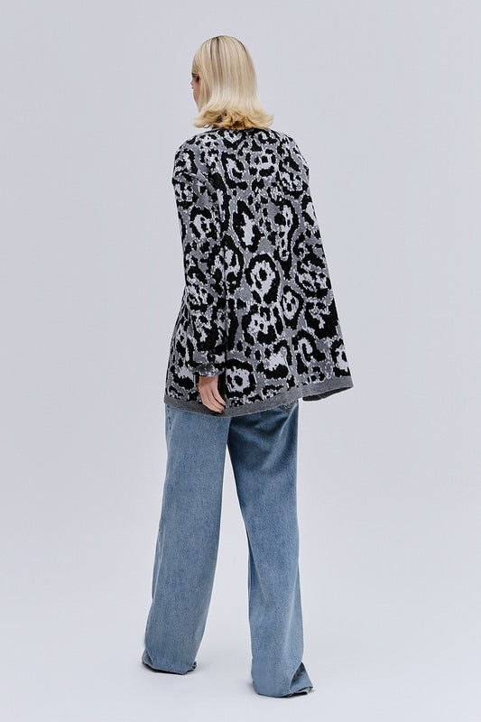 EsgotadoCARDIGAN TRICOT ONÇA CINZA
