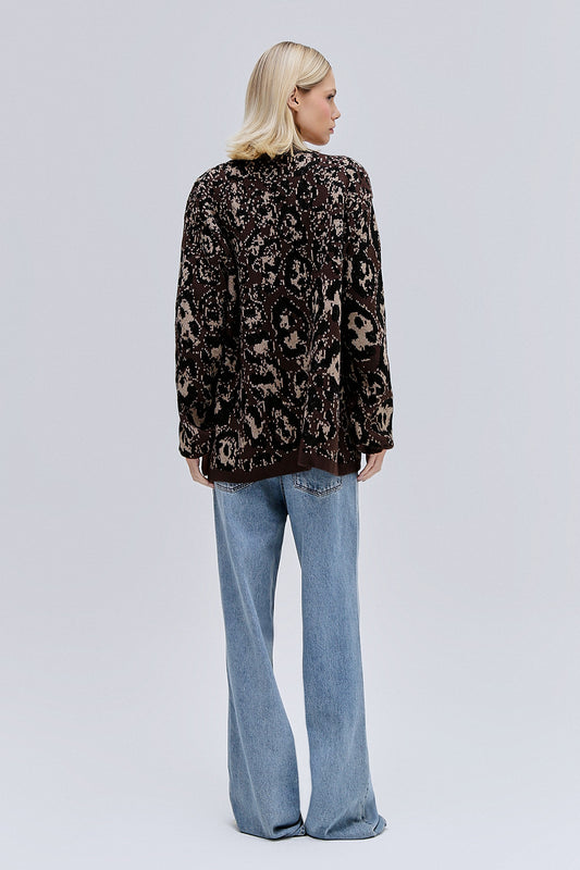 EsgotadoCARDIGAN TRICOT ONÇA MARROM