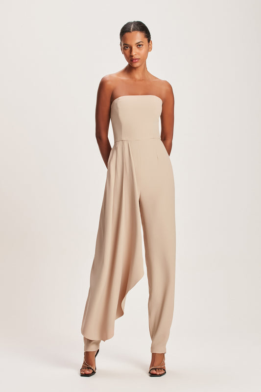 EsgotadoMACACÃO TOMARA QUE CAIA BABADO LATERAL CREPE PATOU BEGE