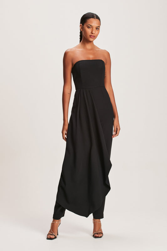 EsgotadoMACACÃO TOMARA QUE CAIA BABADO LATERAL CREPE PATOU PRETO