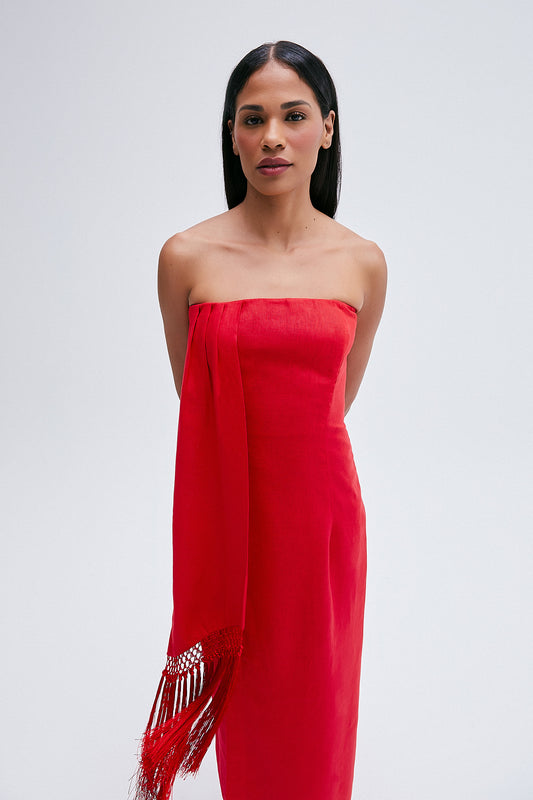 EsgotadoMACACÃO TOMARA QUE CAIA FRANJA LINHO VERMELHO