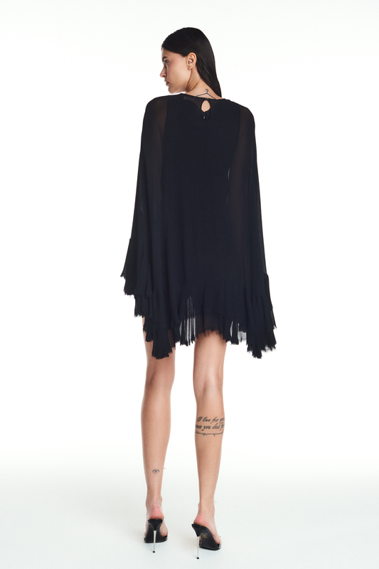 MACAQUINHO COM CAPA BABADOS BARRA E MANGAS GEORGETE PRETO