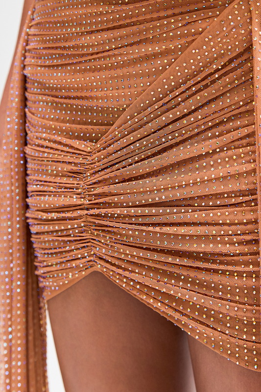 MINI SAIA PALA DRAPEADA BABADOS ASSIMÉTRICOS ALGODÃO MARROM