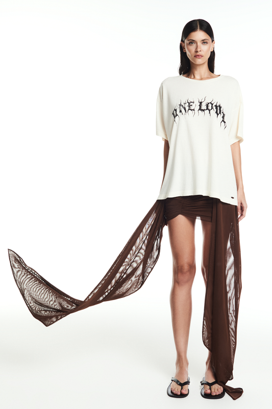 EsgotadoMINI SAIA TRANSPASSES MALHA MARROM