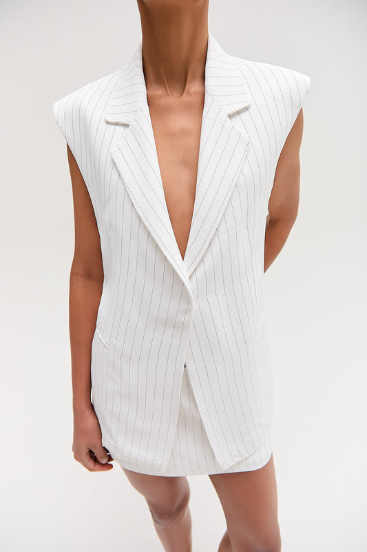 MINI SHORTS SAIA ALFAIATARIA CREPE PATOU RISCA DE GIZ OFF WHITE