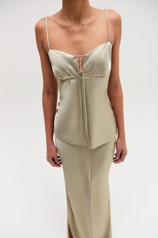 EsgotadoREGATA ALÇA FINA CETIM VERDE PISTACHE