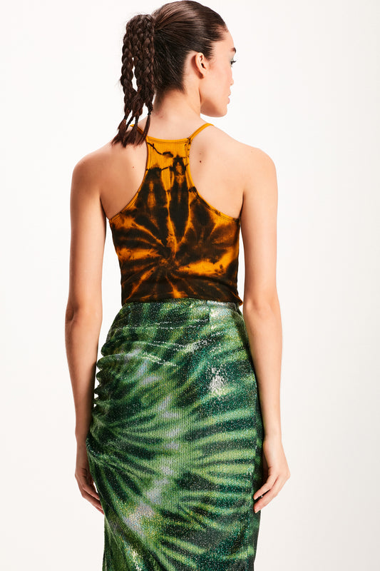 EsgotadoREGATA ALÇA MALHA TIE DYE VERDE BRASIL SILK