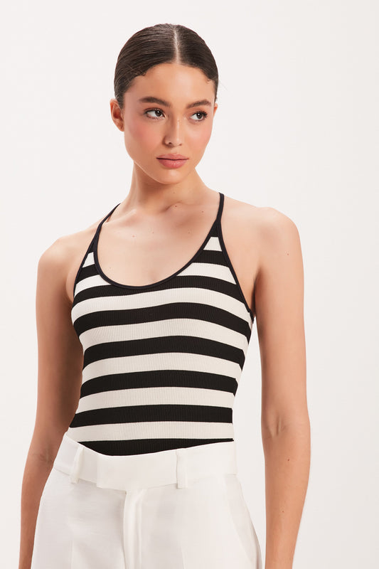 EsgotadoREGATA ALÇA LISTRAS PRETA E OFF WHITE