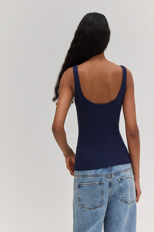 EsgotadoREGATA BÁSICA MALHA AZUL MARINHO