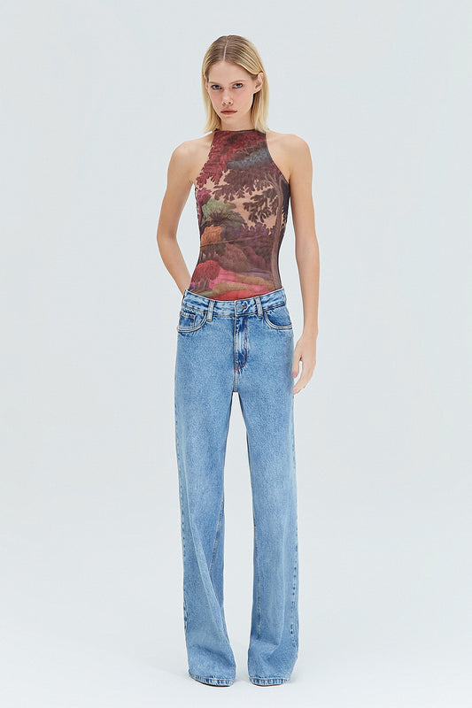 EsgotadoREGATA NADADOR TULE ESTAMPA FLORESTA AZUL