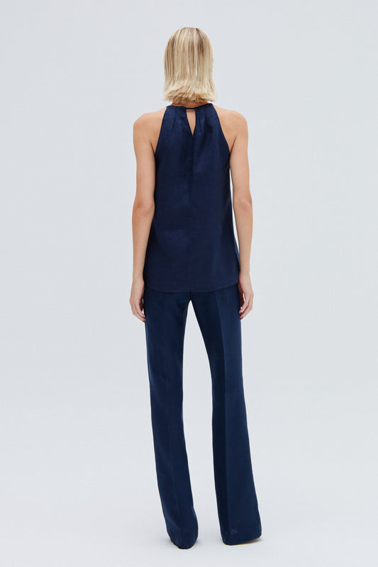 REGATA TRANSPASSADA LINHO AZUL MARINHO