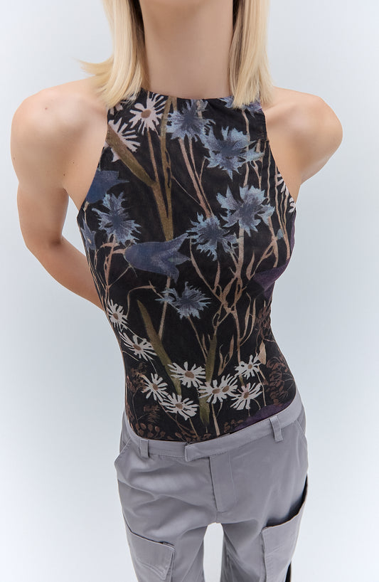 EsgotadoREGATA NADADOR TULE ESTAMPA FLORAL ESCURA