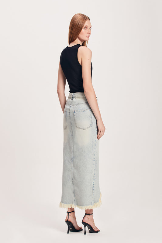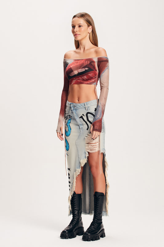 EsgotadoSAIA JEANS DESTROYED ASSIMÉTRICA PINTADA À MÃO
