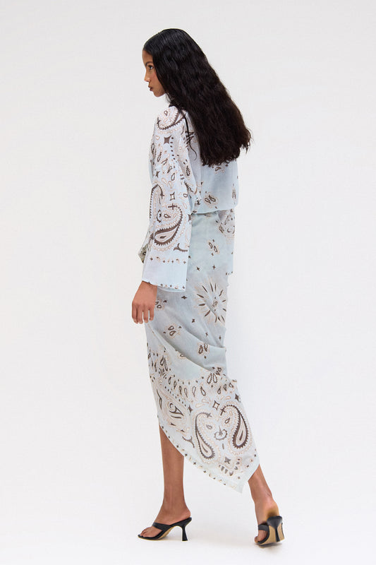 SaleSAIA ASSIMÉTRICA ELÁSTICO CÓS ALGODÃO BANDANA AZUL