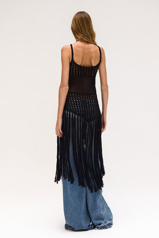 EsgotadoSAIA CROCHE PRETA ASSIMETRICA FRANJAS