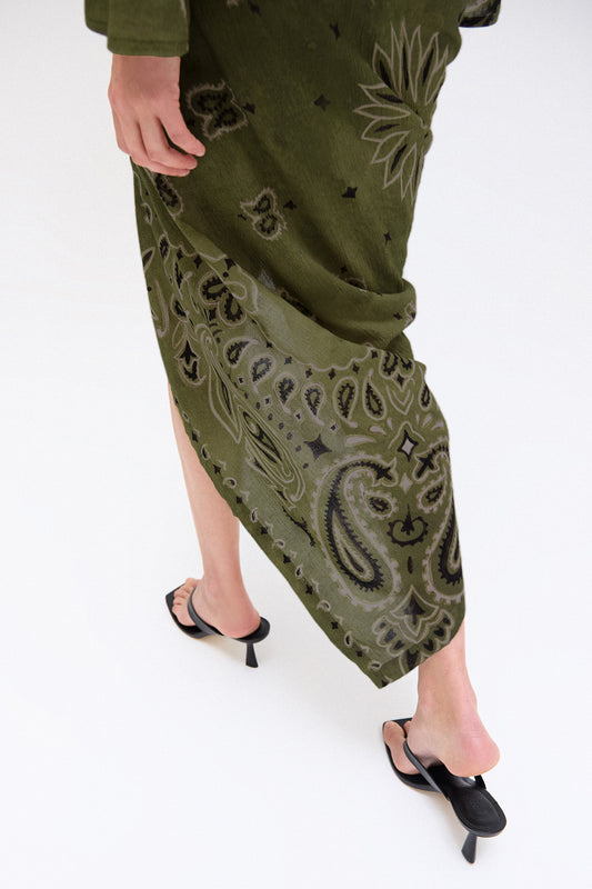 SaleSAIA ASSIMÉTRICA ELÁSTICO CÓS ALGODÃO BANDANA VERDE ESCURO