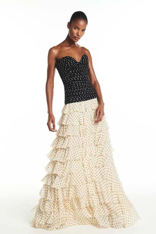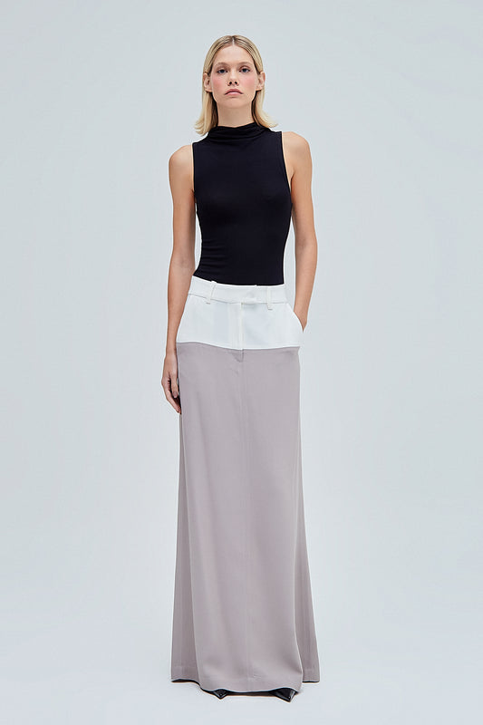 SaleSAIA LONGA BICOLOR CREPE PATOU CINZA E OFF WHITE