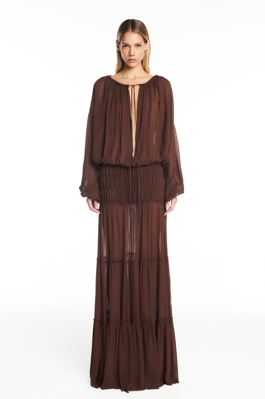 SAIA LONGA CAMADAS PALA LASTEX GEORGETE MARROM