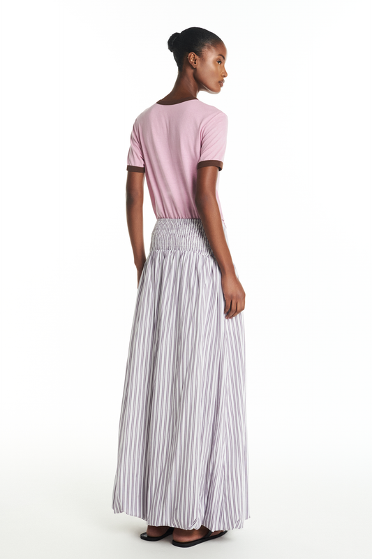 SAIA LONGA BALONÊ PALA LASTEX TRICOLINE LISTRAS LILÁS E OFF WHITE
