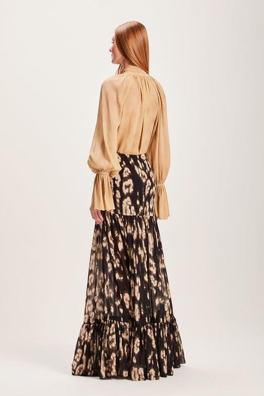 EsgotadoSAIA LONGA AMPLA ONÇA BEGE