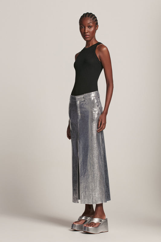 EsgotadoSAIA MIDI FENDA FRONTAL JEANS PRATA