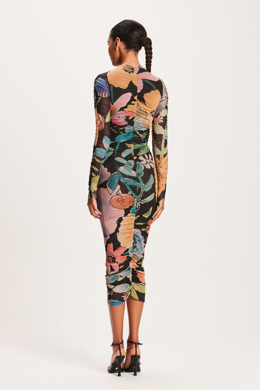 EsgotadoSAIA MIDI DRAPEADA TULE FLORAL MULTICOLOR