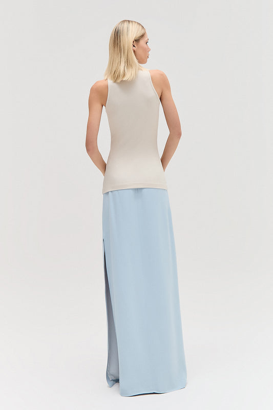 SaleSAIA LONGA RETA FENDA LATERAL CREPE PATOU AZUL CLARO