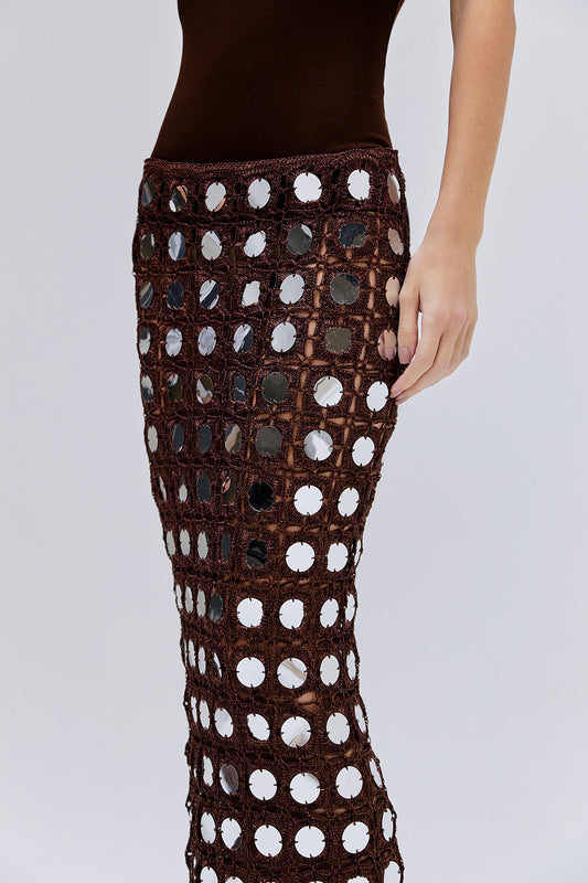 EsgotadoSAIA MIDI CROCHET MARROM LANTEJOULAS