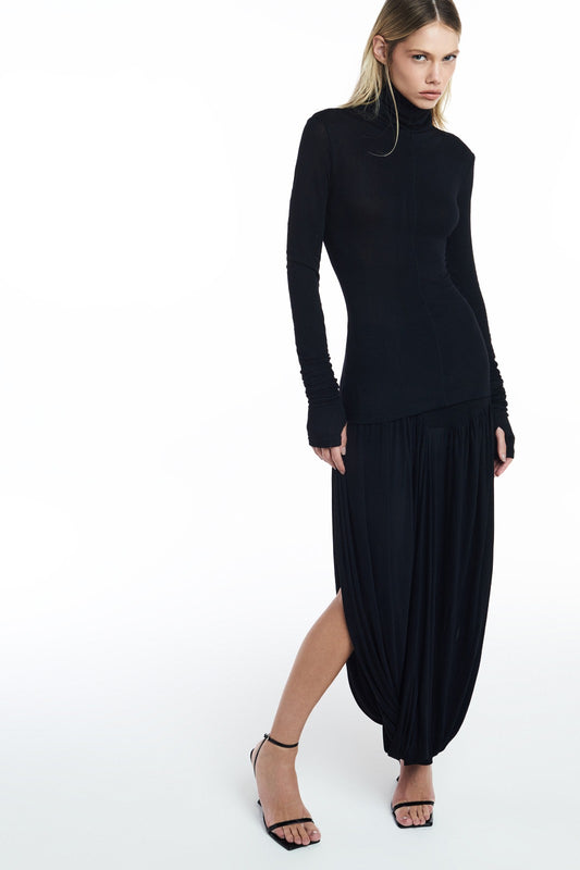 EsgotadoSAIA MIDI DRAPEADA MALHA PRETA