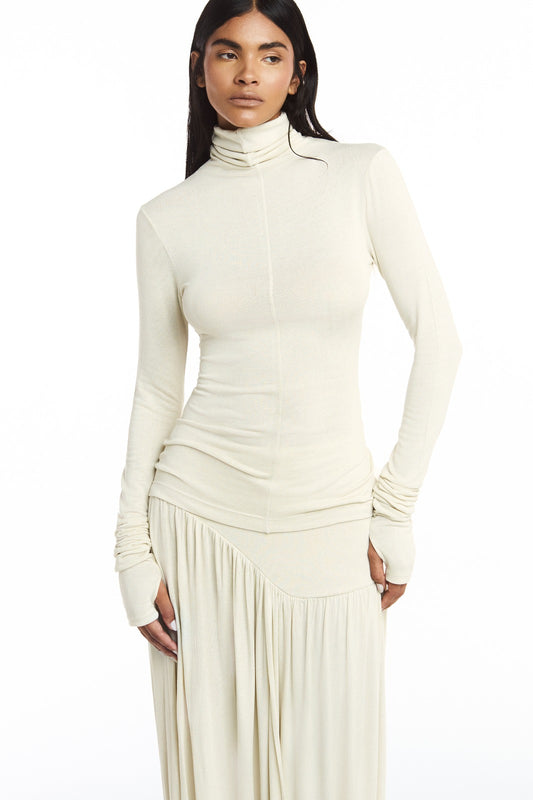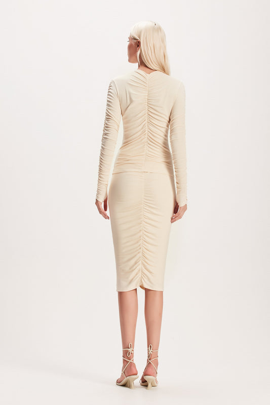 EsgotadoSAIA MIDI DRAPEADA MALHA OFF WHITE