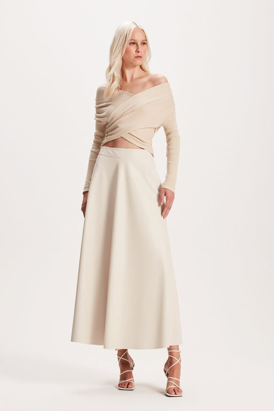 SAIA LONGA TORCIDA MALHA BEGE