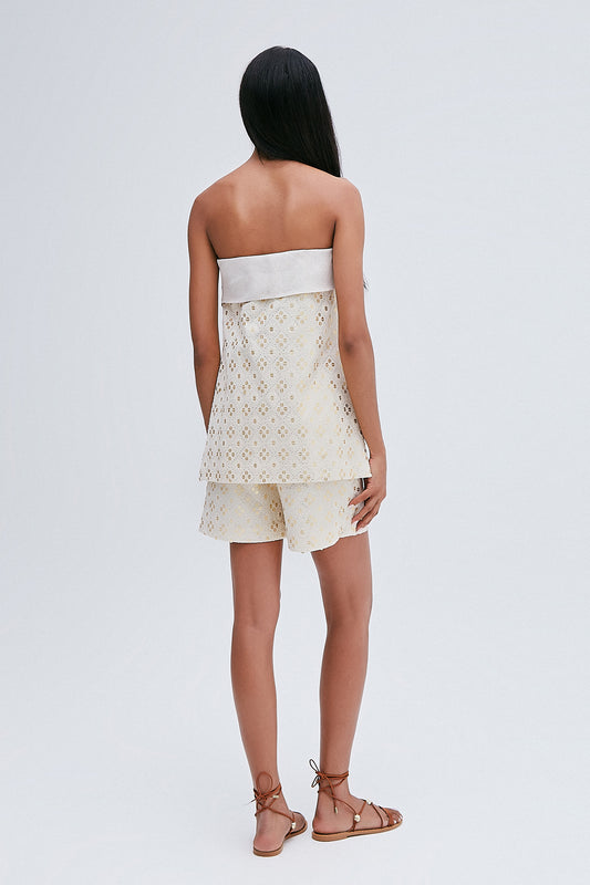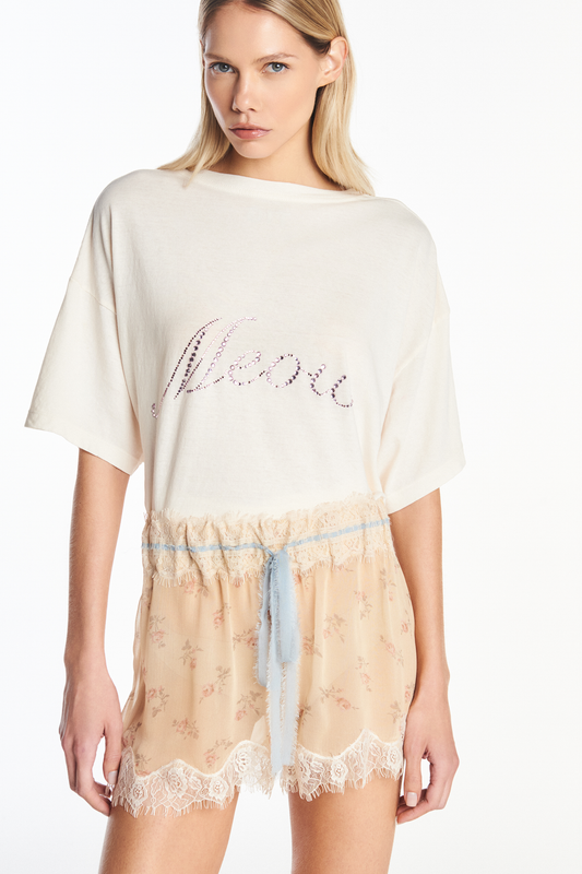 EsgotadoSHORTS BORDADO FLORES FUNDO BEGE