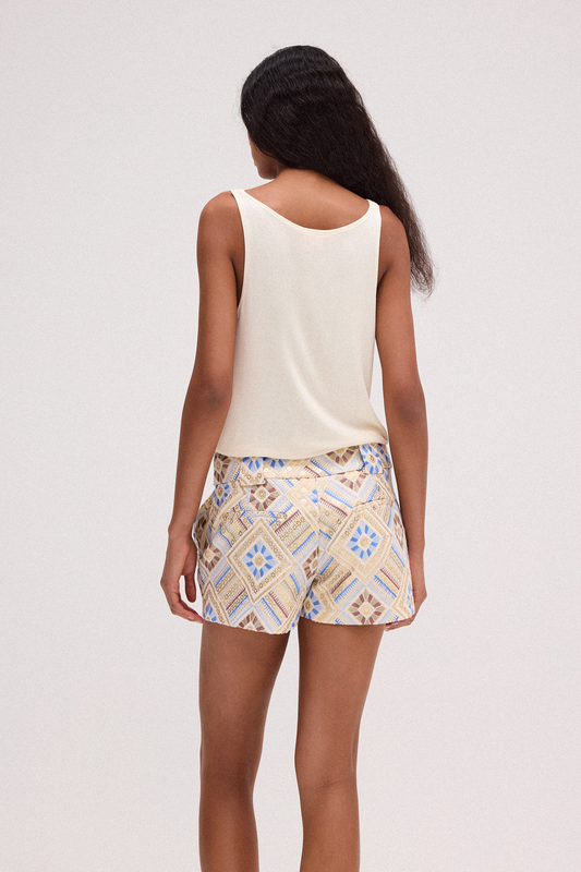 EsgotadoSHORTS ALFAIATARIA TECIDO BORDADO COLORIDO