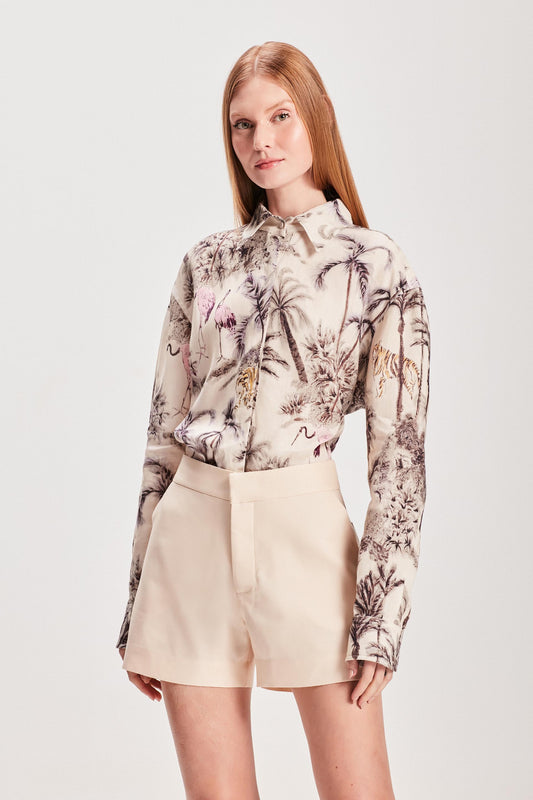 EsgotadoSHORTS LINHO FLORAL OFF WHITE