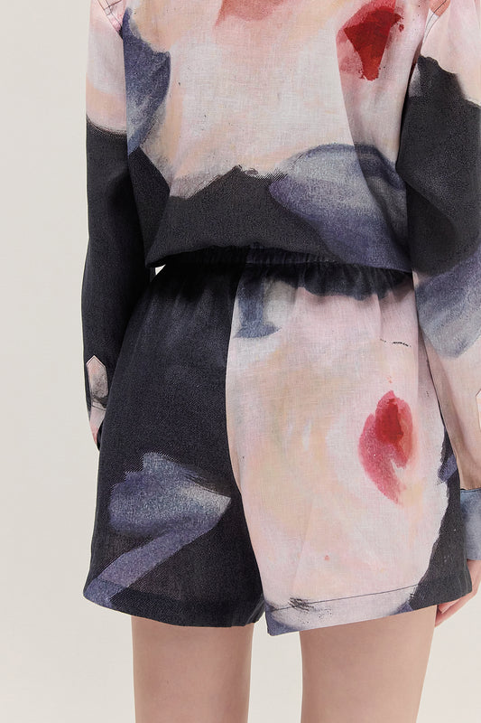 EsgotadoSHORTS LINHO ROSA MARMORIZADO TINTURADO