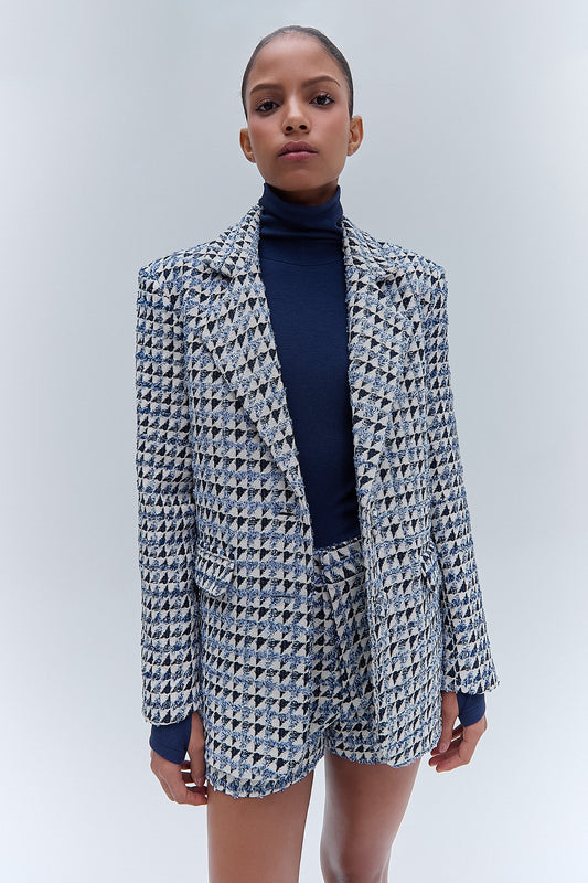 EsgotadoSHORTS TWEED OFF WHITE E AZUL