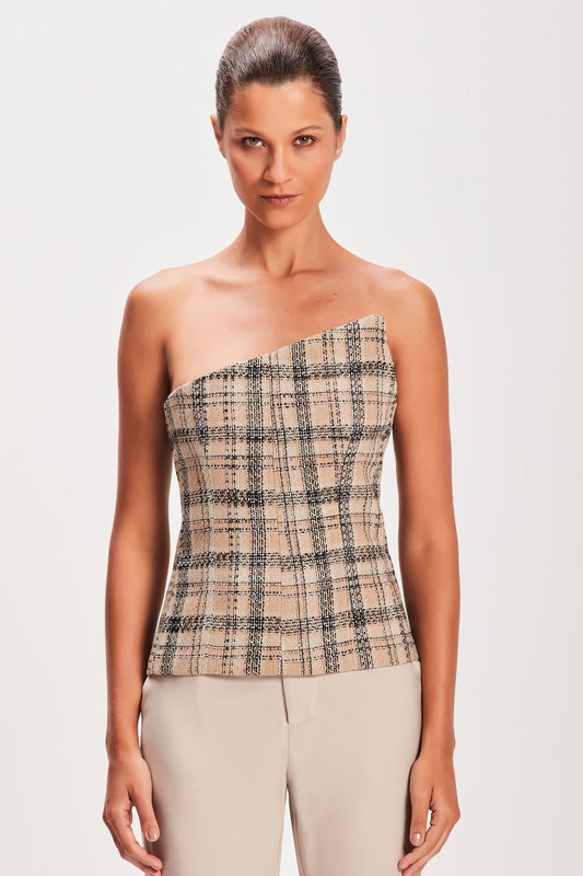 EsgotadoTOP CORSET PONTA TWEED BEGE E PRETO