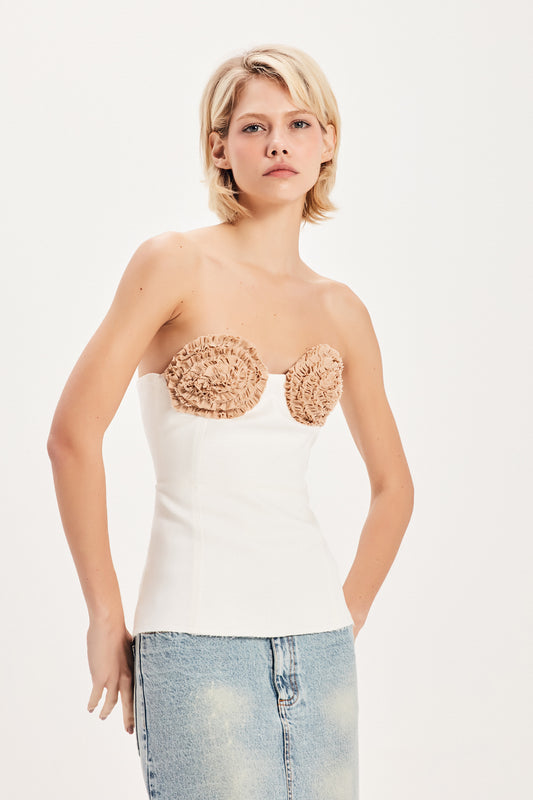 EsgotadoTOP CORSET LINHO OFF WHITE PEITO BEGE