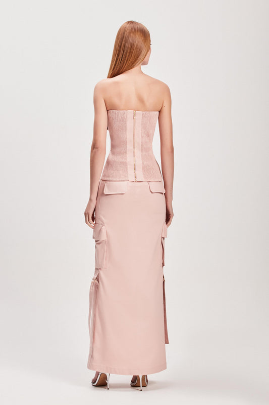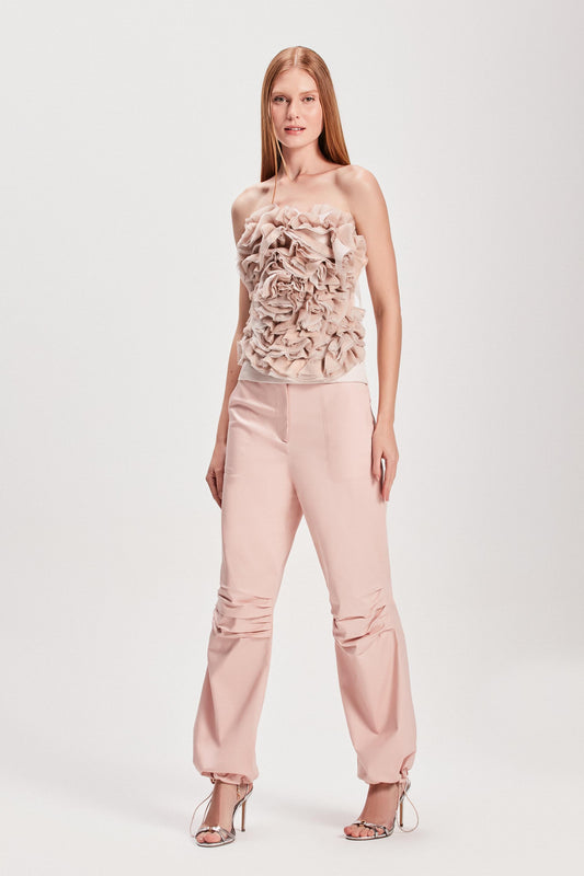 EsgotadoTOP CORSET CREPE PATOU RISCA DE GIZ ROSA