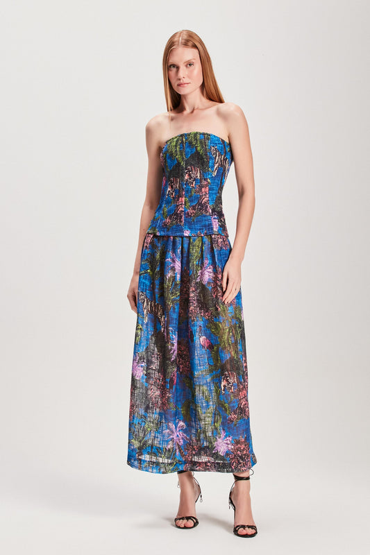EsgotadoTOP CORSET LINHÃO ESTAMPA JUNGLE AZUL
